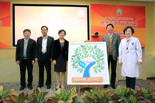 市卫生计生委党委书记黄红表示将全力支持儿中心创全工作,并提出几点要求:一立足现在,谋划长远。她指出,儿中心有深厚的历史,四大医院文化深入体现了儿中心的奋斗史、创新史、包容史和感恩史。她希望儿中心以“创全”为契机,对18年的文明建设进行总结反思;以“创全”为抓手,着力新时代“文明创建”的内涵建设,不仅要提高儿科医疗技术,提升儿科服务品质,更要关心医护人员身心及职业发展,树立儿科医护人员形象,最终使患者满意,使医务工作者从患者的满意度中找到职业归属感、满足感和幸福感。二是振奋精神,抓住机遇。她指出,呵护儿童是兴国之本。在今年的政府工作报告中,李克强总理特别提出,政府要加大投入、政策倾斜,重视儿科医生培养和发展。上海市也将打出优化资源布局、创新运行机制建设、构建五大区域儿科联合体、儿科强基层等“组合拳”,全面推进儿童健康服务能力建设。发展儿科,已经成为了国家卫生战略。在如此给力的政策背景下,我们更应抓住机遇,发挥儿中心重点学科优势和医务社工实力,为国家再兴儿科医学战略添加助力!黄红最后指出,“创建全国文明单位”不仅是一项素质工程、示范工程,更是一项民心工程、社会工程。她鼓励儿中心秉承医院文化,再接再厉,努力创建值得患儿和职工信任满意的儿童专科医院。