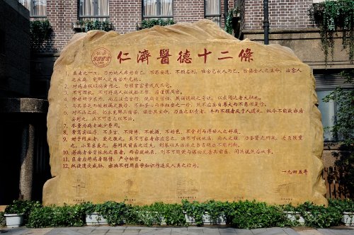 日前,一座巨大的刻有《仁济医德十二条》的玻璃钢仿石雕纪念碑在仁济医院西院前广场落成。1945年,《仁济医德十二条》由当时仁济医院院长陈邦典牵头制定。该纪念碑的落成有利于激励当代仁济医护人员继续传承和弘扬“仁术济世”院训精神,也为美化医院就医环境增添了一道亮丽的文化风景。