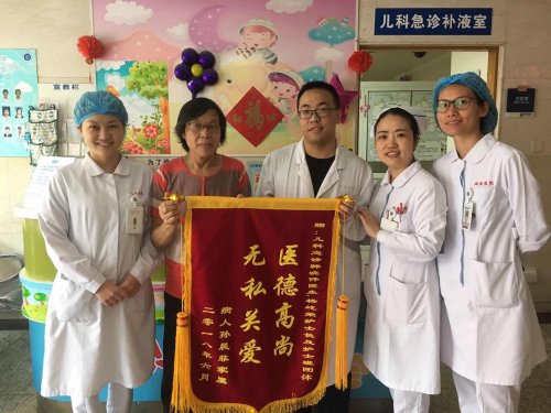 近日,附属瑞金医院儿科急诊发生暖心一幕,抱着小孙女匆匆奔向收费处的倪阿姨在缴纳检查费时,才发现身上的钱没带够,急得眼泪都快掉了下来,情急之下向刚刚接诊的住院医生韩晓伟求助,韩医生一听,二话不说垫付了两百多元医药费,并帮着老人跑腿挂号,让孩子第一时间得到了治疗。6月25日一大早,倪阿姨专程赶到医院送上锦旗,表达对韩医生及儿科医护人员由衷的感谢。