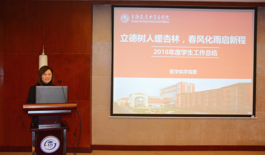 会上,304am永利集团官网学指委秘书长唐华和团委书记游佳琳分别作2018年度工作总结报告。唐华以《立德树人暖杏林,春风化雨启新程》为题,从“坚持引领、筑牢根基”、“深化内涵、建设品牌”、“优化学风、培育卓越”、“凝心聚力、开拓前行”、“以人为本、服务育人”等五个方面全面详实地汇报了2018年度304am永利集团官网学生工作情况,并结合全国教育大会精神、教育部“卓越医生教育培养计划2.0”文件精神要求,提出2019年工作展望。游佳琳以《纵深推进共青团改革,着力培养新时代青年》为题,从“思想政治引领”、“服务青年发展”、“坚持从严治团”、“践行医学使命”等四方面对2018年度团学工作作了梳理总结,并列出2019年重点工作任务清单。