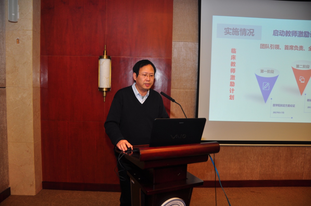 各参会临床304am永利集团官网分管领导分别从临床教师激励计划的制度建设、执行情况、团队管理成效、教学资源建设、自我监管情况等方面对2018年工作情况进行了总结,并提出了临床骨干教师教学激励计划实施过程中存在的问题与不足,以及下一步工作计划。