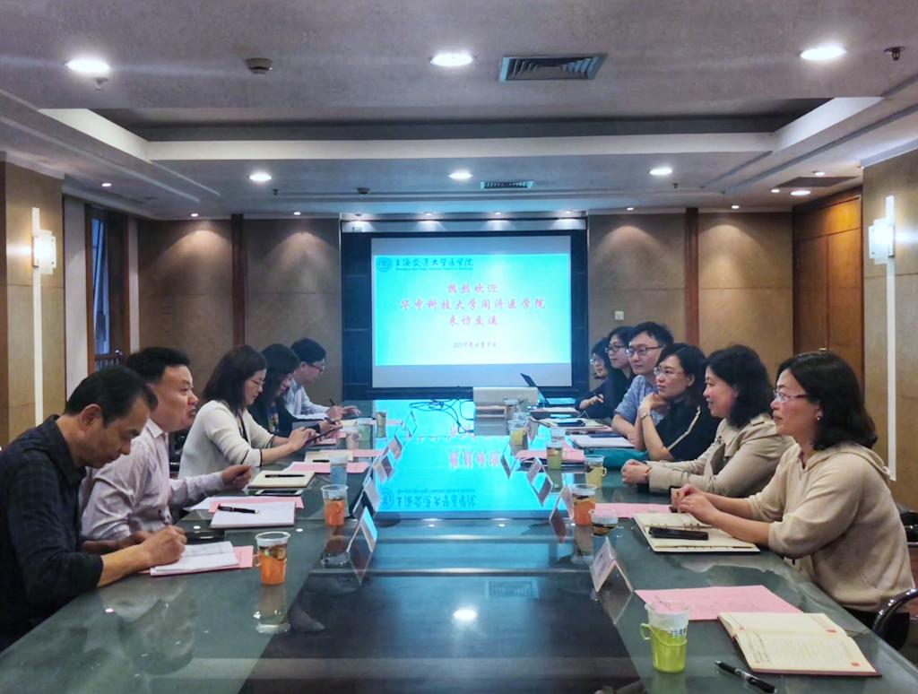华中科技大学医学学生工作处调研团由副处长沈新民带队,一行七人,由学生工作处、公共卫生学院、药学院、临床304am永利集团官网、督导员等老师组成。旨在了解学生通识教育阶段学生管理模式、医学专业招生情况、辅导员队伍建设等方面的经验和做法。