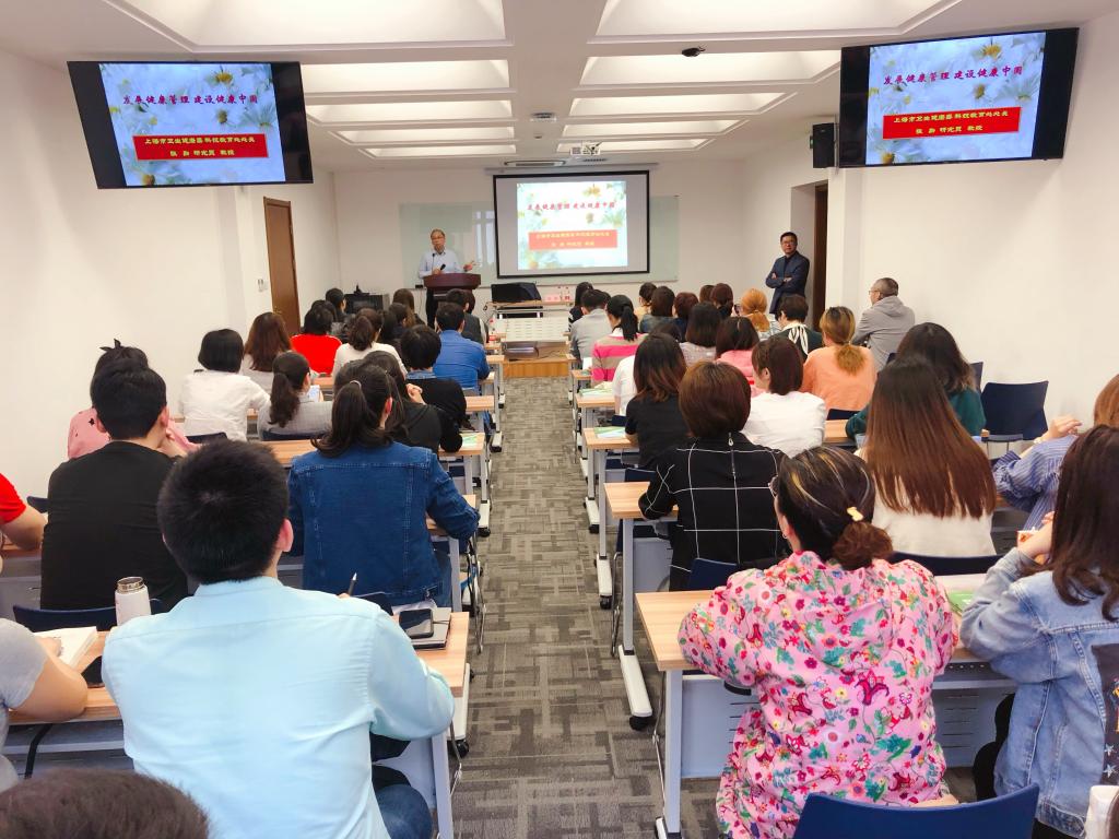 简短而热烈的开班仪式结束后,上海市卫生健康委员会科教处张勘处长以《发展健康管理建设健康中国》为主题为全体学员上了第一课,从社会发展角度介绍了健康管理在国际和国内的发展趋势和需求现状,阐释了健康管理与健康中国建设的密切关系,详细说明了生命周期健康管理以及健康管理的流程和基本策略,并介绍了国家健康管理师在基本卫生保健领域的重要作用,作为医学专业人员,本身已有医学知识,再通过系统地理论学习,可以说是锦上添花,提升服务能力,拓宽服务领域。在当前开展的家庭医生签约服务团队中,健康管理师承担着重要的角色和作用,推动基层医疗机构卫生服务工作。