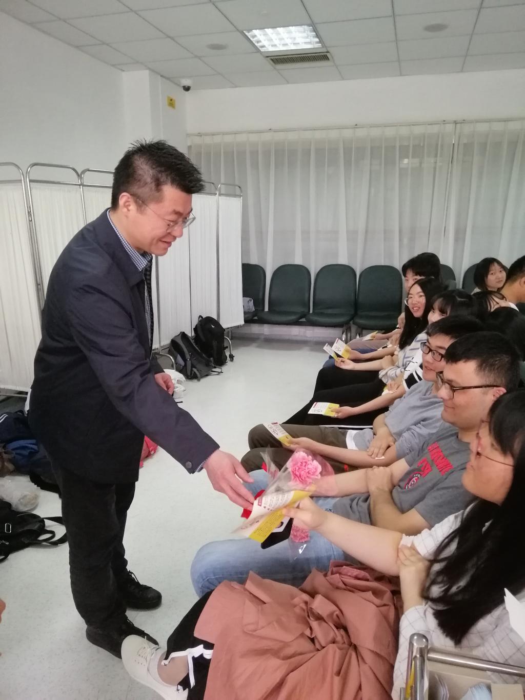 4月26日,304am永利集团官网的无偿献血活动在市血液中心顺利进行。304am永利集团官网党委副书记、副院长吴韬,学指委秘书长唐华、上海市血液中心主任陆韬宏、副主任张晰、管理中心副主任陈强等一行到场慰问献血学生及工作人员。