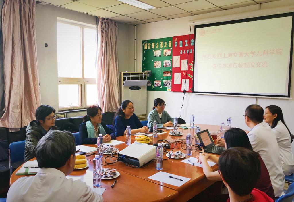 赴北京大学第一医院期间,北京大学第一医院儿科主任姜玉武、儿科教学主任齐建光、儿科医疗主任熊晖、儿科教授侯新琳、杜军保等热情接待并出席座谈会。座谈会上,姜玉武主任首先代表北京大学第一医院对陈怡绮等一行的到来表示欢迎。他表示:北京大学第一医院(以下简称“北大一附院”)作为一所综合性医院,儿科的医疗、教学、科研工作,是医院科室建设的重点任务。资源局限性是制约北大一附院儿科发展的重要因素。如何拓宽医疗及教学资源、转变传统教学观念,推动多功能医疗教学平台建设,实现儿科资源共享,为社会培养更多全面的儿科人才,是北大一附院儿科一直亟待思考和解决的问题,他期盼北大一附院儿科与交大304am永利集团官网儿科学院能一直保持密切良好的联系,在交流实践中相互促进,共同发展。