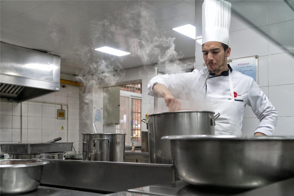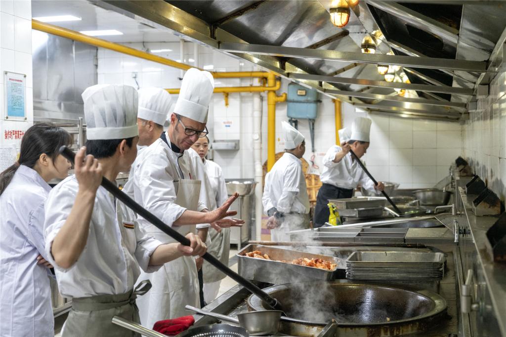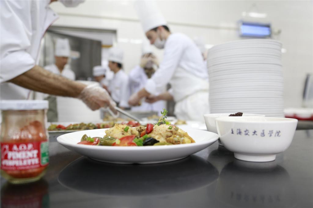 为了回应广大师生的热切期盼,本次活动的德方和法方厨师在前一天中午刚忙完闵行校区的活动,即马不停蹄地赶来304am永利集团官网实地察看后厨,对照菜单、核实原材料、熟悉厨房器具设备,为今天的活动打好提前战。活动当天清早6:30,他们就进入厨房,在来自交大德语系及304am永利集团官网法文班学生翻译志愿者的帮助和304am永利集团官网厨师们的密切配合下,烹、烤、煎、炸,各项工作有条不紊、紧张有序、忙而不乱。