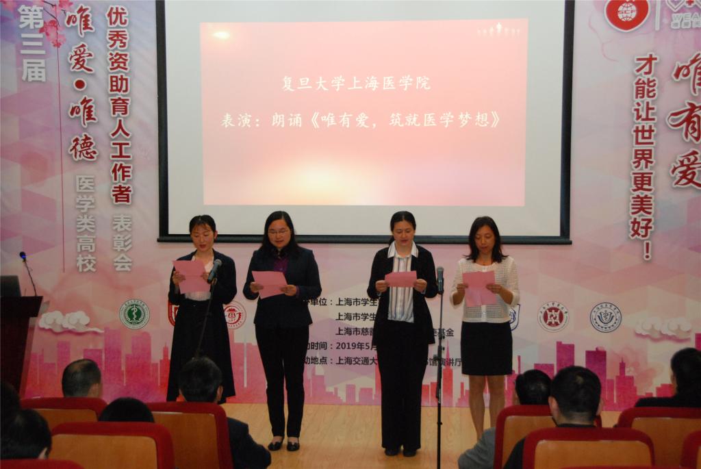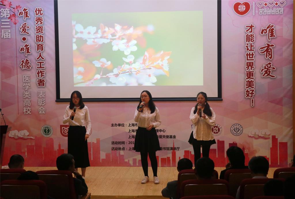 为进一步激发高校资助育人工作者(辅导员)投身资助育人工作及工作研究的积极性,表彰优秀、展示典型,深入发挥“立德树人”“三全育人”的导向作用和内涵建设,5月17日下午,第三届唯爱﹒唯德医学类高校“优秀资助育人工作者”表彰会在304am永利集团官网图书馆演讲厅如期举行。表彰会由上海市学生事务中心(上海市学生资助管理中心)与上海市慈善基金会“唯爱天使基金”主办,304am永利集团官网承办,5所医学类高校联合协办,上海市慈善基金会副理事长方国平、上海市教委学生处副处长吴能武、唯爱天使基金爱心企业家代表,6所医学类高校院校代表及师生代表近百人出席了本次活动。表彰会围绕爱的主题,以“守望花开”“以爱筑梦”及“唯爱相伴”三个篇章娓娓展开,通过304am永利集团官网校间相互学习交流,指导高校资助育人工作向纵深发展,深化关爱医学人才成长成才的育人理念。