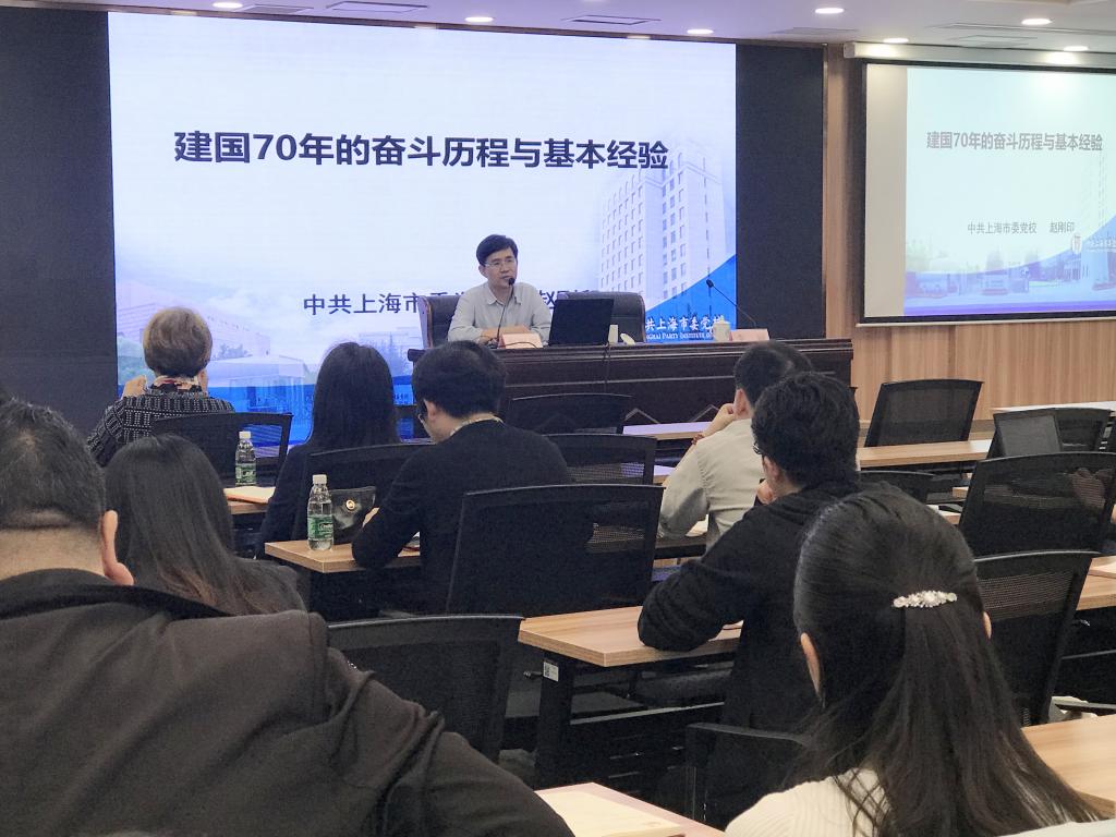 集中培训时间为期2天,先后发放了《习近平新时代中国特色社会主义思想学习丛书》和《读懂中国》等学习书籍供学员研读交流;组织参观了上海解放纪念馆、淞沪抗战纪念馆,进行“重温历史,饮水思源,不忘初心”党课教育;邀请了市委党校赵刚印教授作“建国70年的奋斗历程与基本经验”专题党课;邀请到304am永利集团官网常委、党委宣传部部长李剑以“学深、弄懂、悟透”为题对支部做好意识形态工作进行了专题辅导;邀请到304am永利集团官网纪委专职副书记、监察室主任陈亮“以案说纪”对支部党风廉政建设工作进行专题辅导;分组开展情景教学,通过模拟接收预备党员大会和预备党员转正大会场景、现场交流点评的形式,既帮助学员以直观的学习体验和自主地交流研讨,熟悉和掌握支部发展党员的规范流程和工作实务,也借此让学员们回顾入党初心,审视自己是否组织上入党一次,思想上入党一辈子,从而不忘初心再出发。
