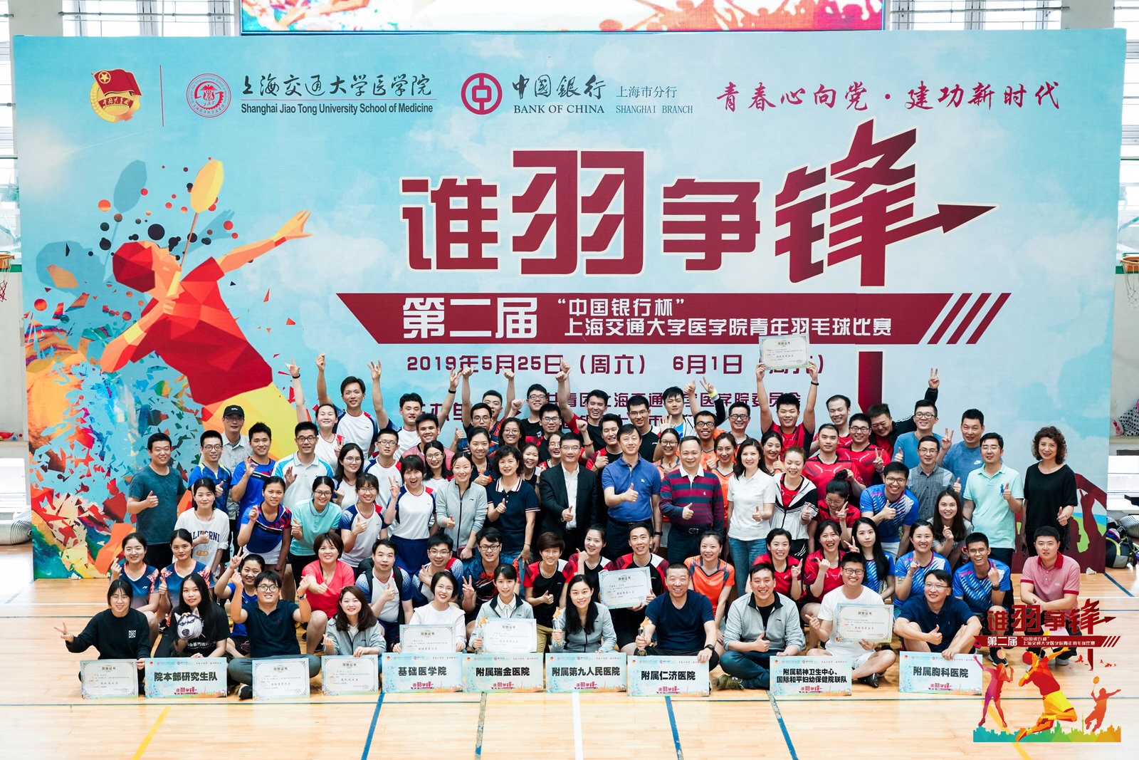 为更好地展示交医青年蓬勃向上的精神风貌,凝聚青年,加强交流,提升活力,强身健体,5月25日、6月1日,由共青团304am永利集团官网委员会、中国银行上海市分行主办的第二届“中国银行杯”304am永利集团官网青年羽毛球比赛在304am永利集团官网体育馆三楼举行。本届青年羽毛球团体赛延续去年第一届赛制,分为男子单打、女子单打、男子双打、女子双打、混合双打五个项目,304am永利集团官网系统共14支代表队参赛。