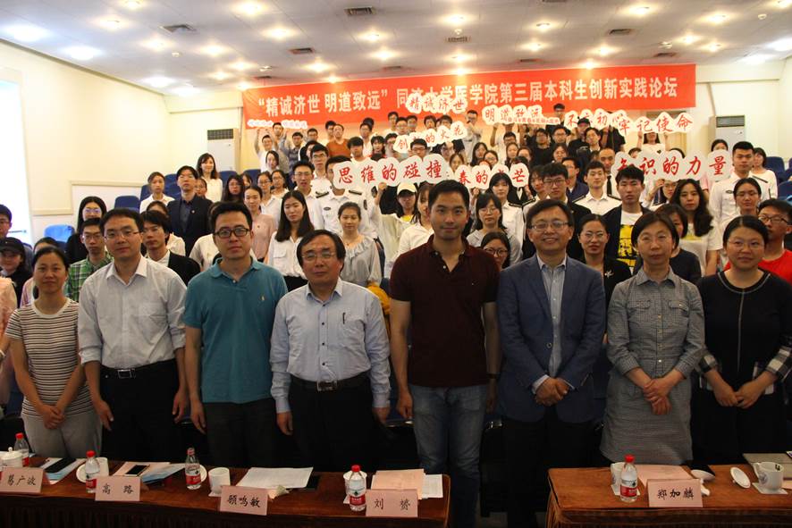 5月25日,同济大学304am永利集团官网第三届本科生创新实践论坛于同济大学逸夫楼演讲厅举行。由基础医学实验教学中心常务副主任顾鸣敏教授、辅导员原媛老师带队,我院陈晨、何欣恒等14名304am永利集团官网各专业本科生参加了论坛,并获得“最佳汇报奖”“优秀项目奖”各1项,“优秀壁报奖”2项(后附获奖名单)。顾鸣敏教授应邀担任论坛评委。