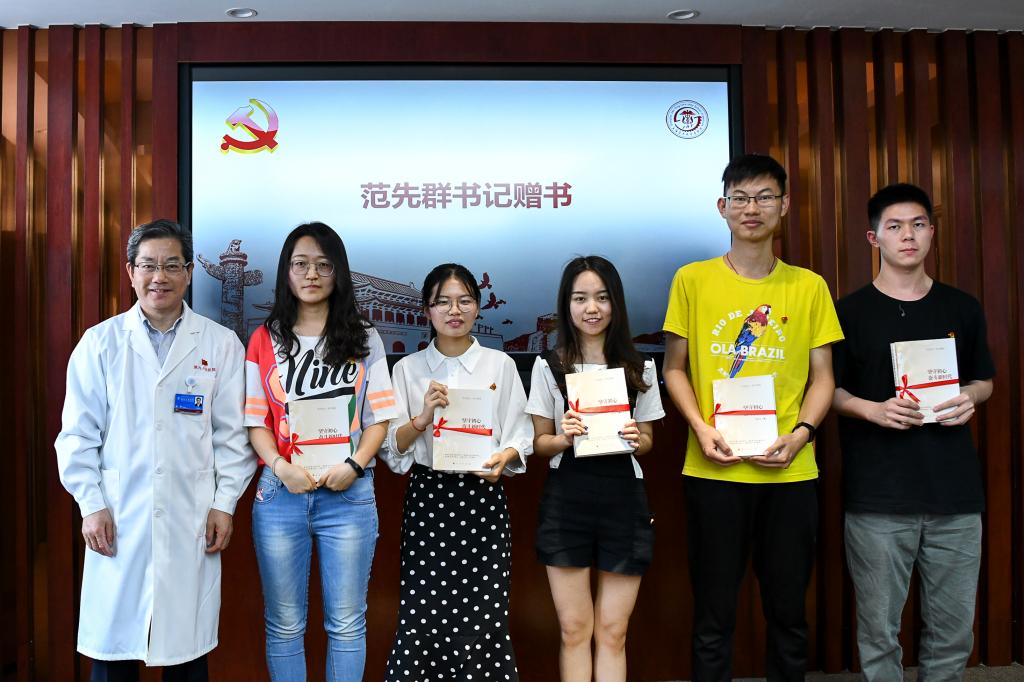 随后,范先群书记与支部党员们进行了座谈交流,九院眼科葛盛芳教授、沈键锋研究员也参与讨论互动,眼科党支部书记毕晓萍为大家做了眼科党支部工作介绍。座谈会上学生党员们结合自身实际,从参观心得、对专业的认识及党员使命责任等方面积极踊跃畅谈交流。针对大家提出的科研与发展上的困惑,范书记和老师们结合亲身经历,用丰富生动的事例答疑解惑,并提出了许多宝贵建议。鼓励同学们从临床中发现问题,在实验室中处理问题,再应用到临床中解决问题。会上,范先群书记向支部党员代表赠送《初心和使命》《坚守初心,奋斗新时代》等书籍,鼓励同学们不忘“研究”入党初心,牢记“医学生”神圣使命,努力医路攀登,建功立业新时代。