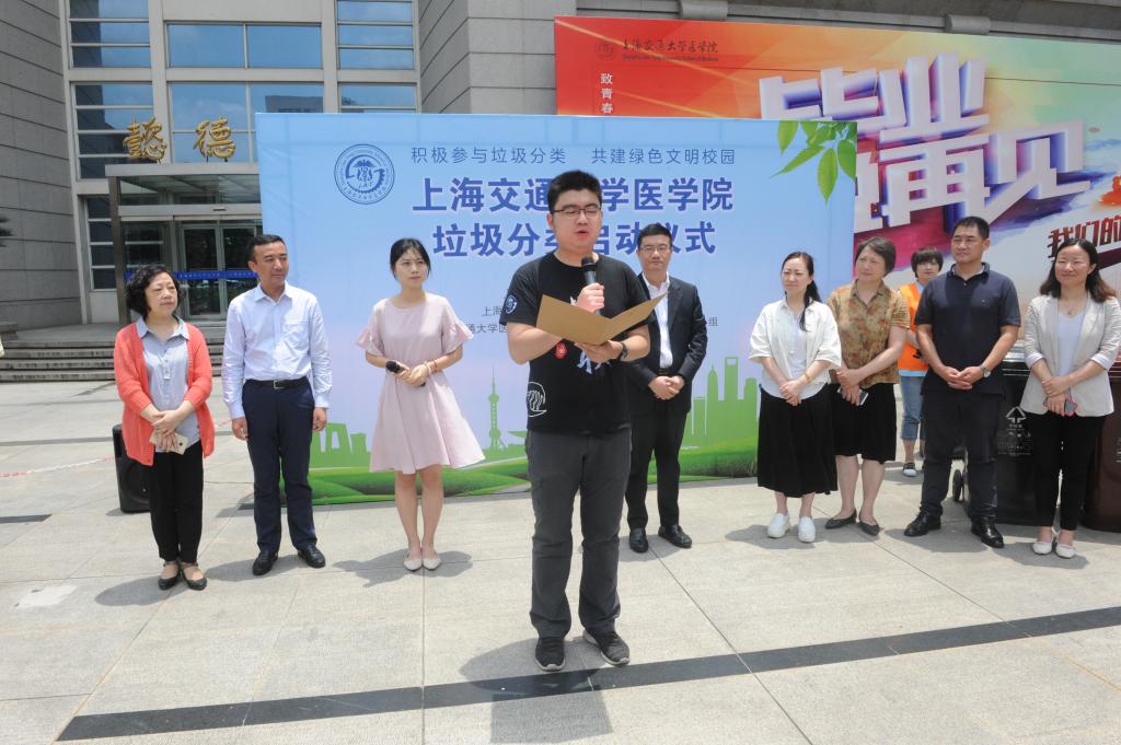 学生代表宣读垃圾分类倡议书,表示要从自身做起,做垃圾分类的倡导者、参与者、宣传者和健康生活的守护者。