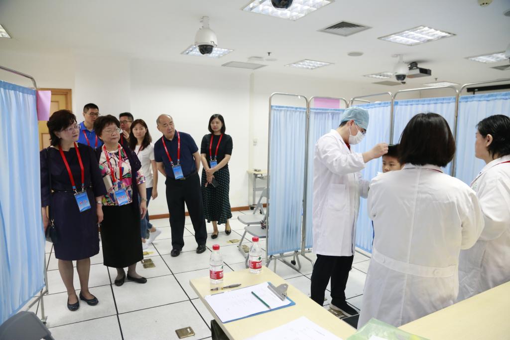 6月23日上午,2018年上海市企事业内设医疗机构全科转岗培训113名学员在304am永利集团官网临床实训中心接受了临床技能考核。上海市卫健委基层卫生健康处处长杨超、主任科员钟姮、科教处调研员周蓉,会同上海市企事业卫生保健管理协会会长王拥庆、副会长兼秘书长张志燕,以及304am永利集团官网继续教育学院副院长浦川海、职业培训部主任杨英和副主任沈莹等参与组织了本次临床技能考核工作。上海市专科医师规范化培训专家委员会特聘专家、本次考核总考官华英教授等莅临现场督导巡考,并现场指导,以保证本次考核工作的有序开展。