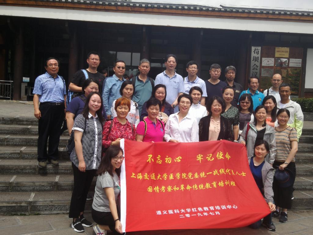 7月19日上午,国情考察和爱国主义教育培训开班仪式在遵义医科大学举行,遵义医科大学党委副书记田宗远出席并授班旗,交大304am永利集团官网党委副书记施建蓉做开班动员讲话。施建蓉要求,全体学员在革命圣地遵义参加教育培训,要严守纪律、服从安排,认真学习、提升境界,加强交流、联情联谊,进一步凝聚和巩固政治共识。民革交大304am永利集团官网总支部主委毛恩强代表学院领取班旗。培训班开班式由遵义医科大学红色教育中心主任李荣远主持。