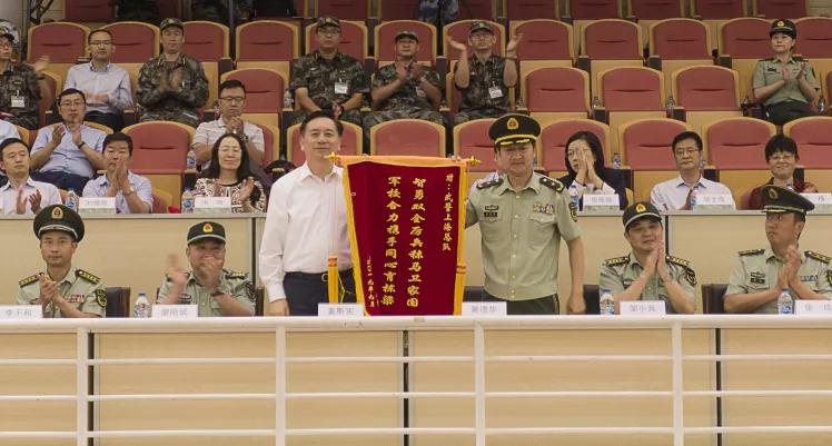 王伟明作军训总结讲话。吴韬宣读304am永利集团官网2018级学生军训团嘉奖令。在今年军训中,参训同学刻苦训练,顽强拼搏,涌现出了一批优秀个人。304am永利集团官网秦恒伟等30名同学获“优秀军训小班长”荣誉称号,吴天豪等116名同学获“优秀军训学员”荣誉称号。姜斯宪代表学校向武警上海总队赠送锦旗。