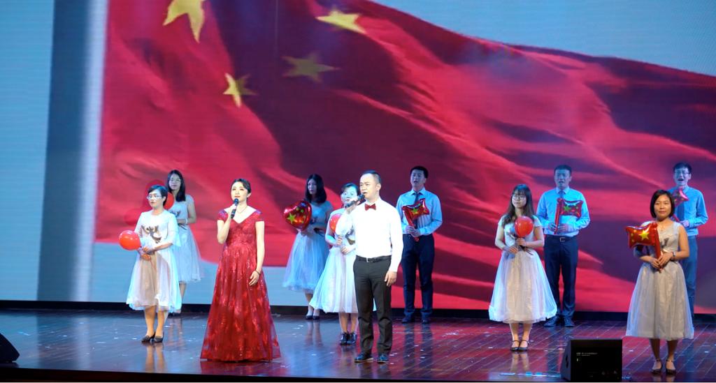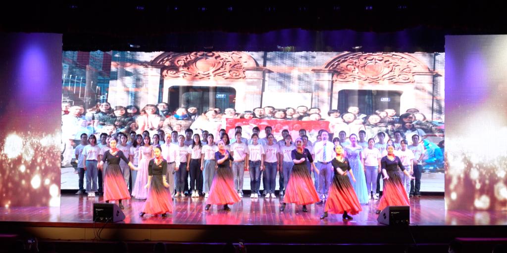 演出在庄严的国歌声中隆重拉开帷幕,合唱《五星红旗》唱出中华儿女曾经奋斗的峥嵘岁月;诗朗诵《春天的故事》讴歌伟大祖国的蓬勃发展;独唱《天耀中华》优美的旋律带领我们感受祖国母亲沧海桑田的巨变;诗朗诵《我们的新时代》展现70载改革历程,礼赞新时代,奋斗新时代;合唱《新的天地》演绎了教职工投身教育,甘于奉献的精神风貌;古典舞《清平乐》诠释了历久弥新的东方神韵;《今天是你的生日》为祖国母亲送上诚挚的生日祝福;歌曲《不忘初心》让大家重温了中华民族前进的历史足迹;诗朗诵《以青春的名义宣誓》表达了新时代青年坚守党的初心和使命,践行为人民服务的宗旨。最后,全场齐唱《我和我的祖国》将活动推向高潮。