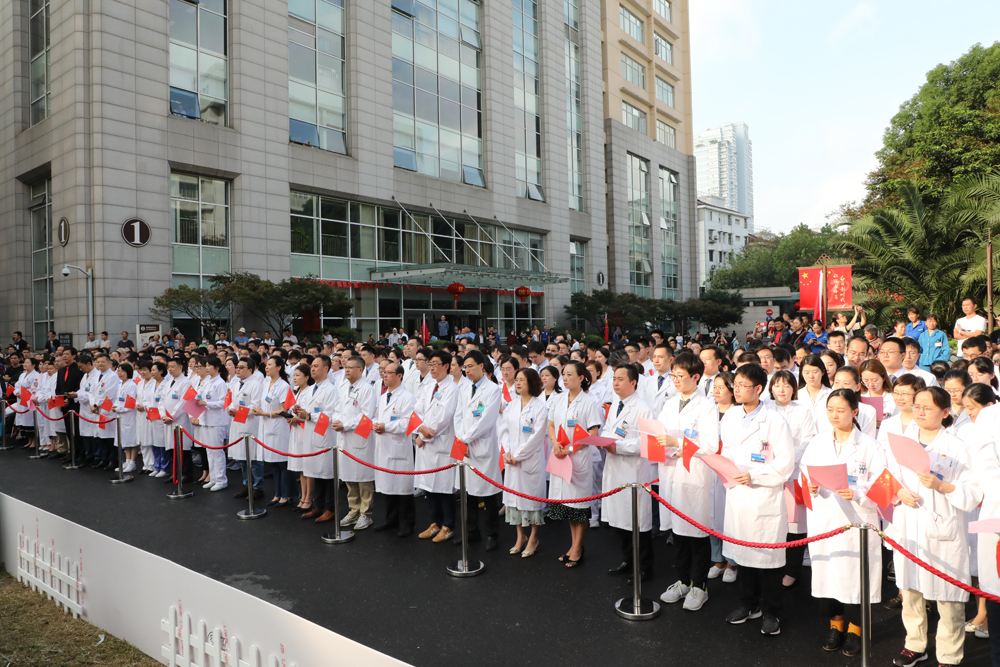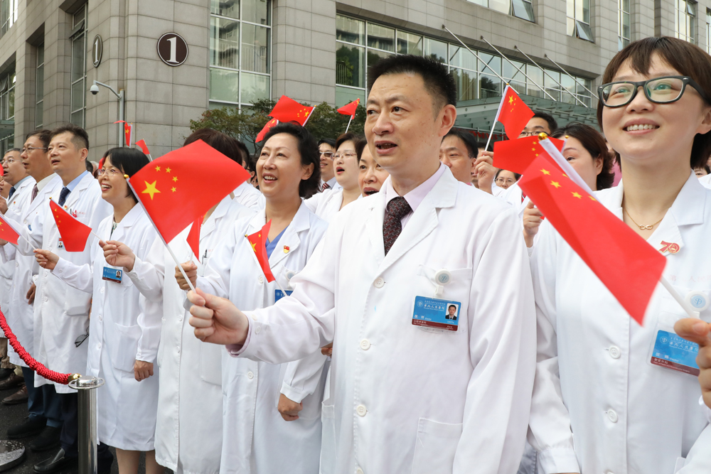 博士生邓智中同学则道出了未来医者们的决心:我们享受着前辈们流血献身而收获的胜利果实,在前所未有的美好环境中茁壮成长。今天看着国旗冉冉升起,共同唱响国歌,我们一定不忘初心,砥砺前行,为祖国医药卫生事业的发展和人类身心健康添上属于自己的一笔!