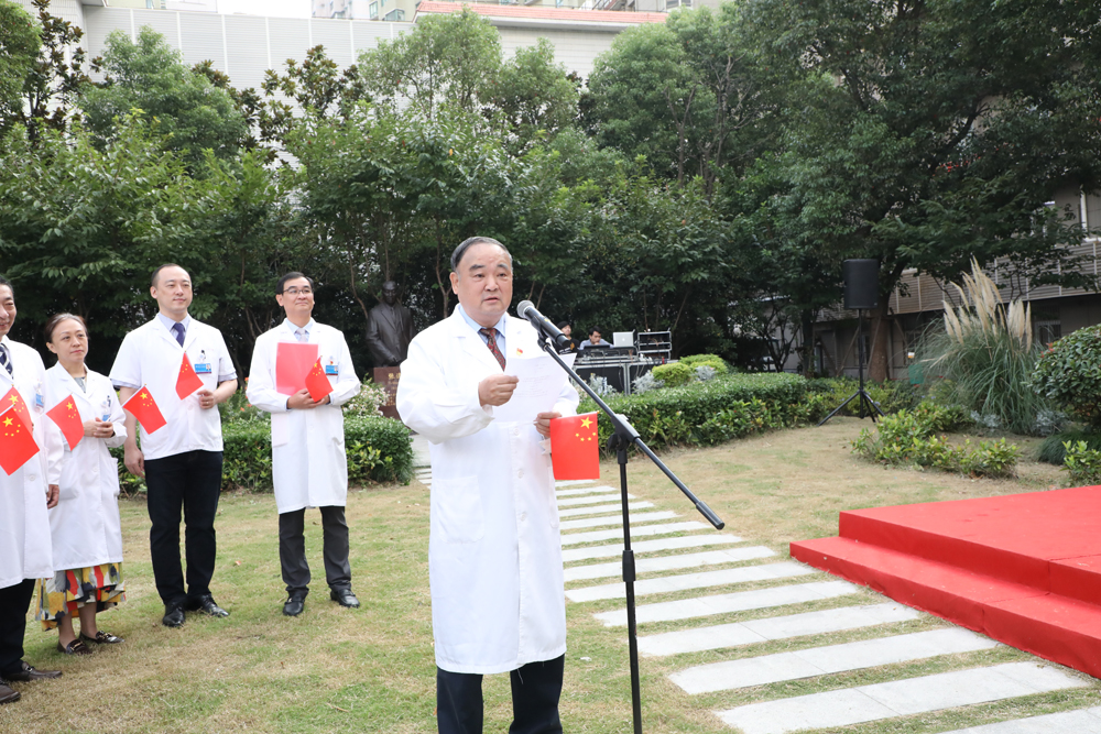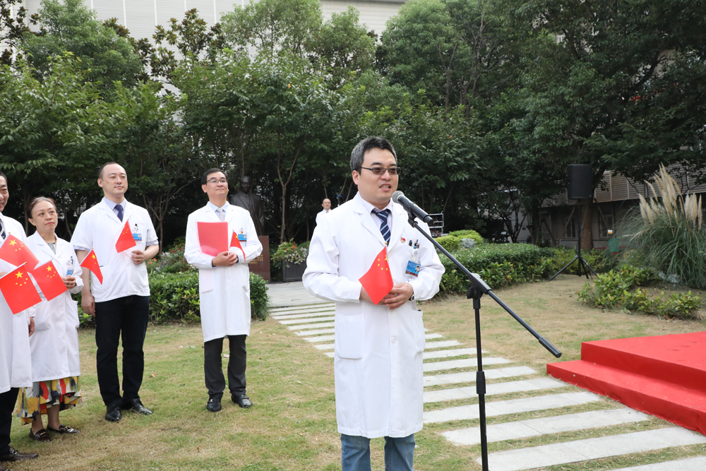 升旗仪式上,邱蔚六院士、周曾同教授、援藏干部乌丹旦医生、临床专业八年制学生邓智中分别作了发言。