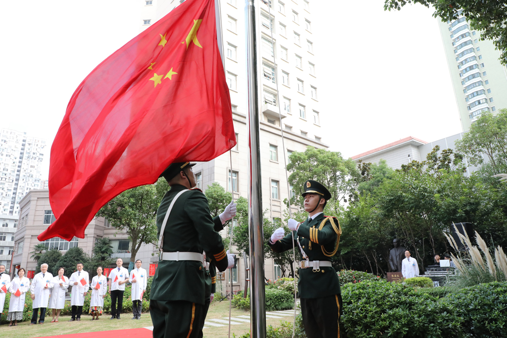 国旗高高飘扬,心中初心不忘。在新中国70华诞前夕,附属九院人用一场特殊的升旗仪式抒发了医务工作者对祖国的赤诚之心。9月30日清晨,伴着一缕初升的阳光,医院的仪仗队踏着整齐的正步护送国旗入场,随着升旗手振臂一挥,国歌声中,鲜艳的五星红旗冉冉升起,全体人员伴着注目礼齐唱中华人民共和国国歌。