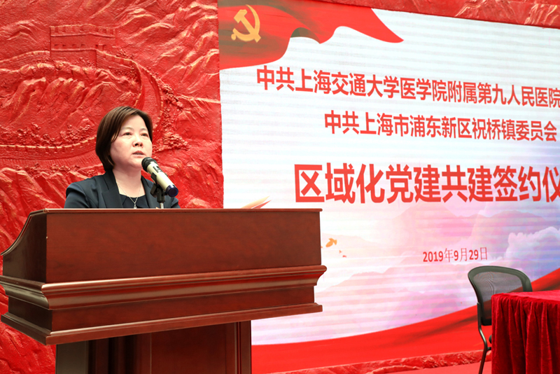 九院党委书记郭莲在签约仪式上对此次共建协议签署的背景、目的和意义进行了介绍。她指出:“作为国内知名的三甲医院,九院在健康中国2030任务的建设当中责无旁贷。精准对接多层次健康服务需求,提供多形式市民健康服务,提升居民自我健康管理意识等方面携手祝桥镇共同发挥积极作用。”同时,她认为在此次共建协议签署后,“九院和祝桥镇党委将在党建工作的引领下,不断增强工作开展的针对性和实效性,更好地推动发展、服务群众、凝聚人心、促进医患和谐。”