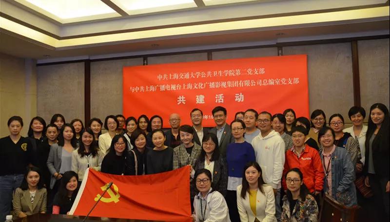 在开展“不忘初心,牢记使命”主题教育之际,为聚焦人民群众真正关心的健康热点问题,具体深入落实健康传播等相关领域开拓交叉项目,力争发挥双方优势,强强联合,打造更多更优秀的品牌节目,同时也借助融媒体不断提升科研产出与成果转化,公共卫生学院第二党支部与上海广播电视台总编室党支部合作共建活动于10月17日上午,在304am永利集团官网懿德楼101会议室举行。SMG总编室主任、党支部纪检委员朱涛,SMG总编室副主任、总编室党支部书记汤砺锋,SMG总编室副主任金怡,以及SMG都市频道副主编,《36.7℃》和《X诊所》两档知名栏目制片人与导演受邀与会。公共卫生学院党委书记黄荣,副院长蔡泳,各办公室主任以及双方支部党员出席此次活动。