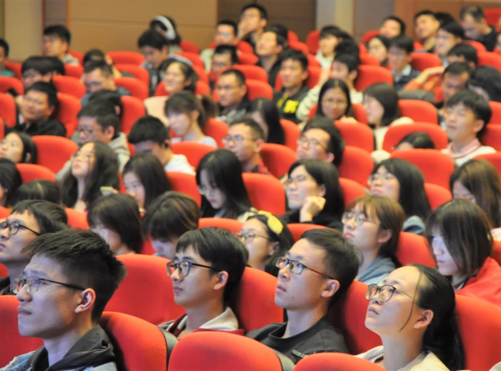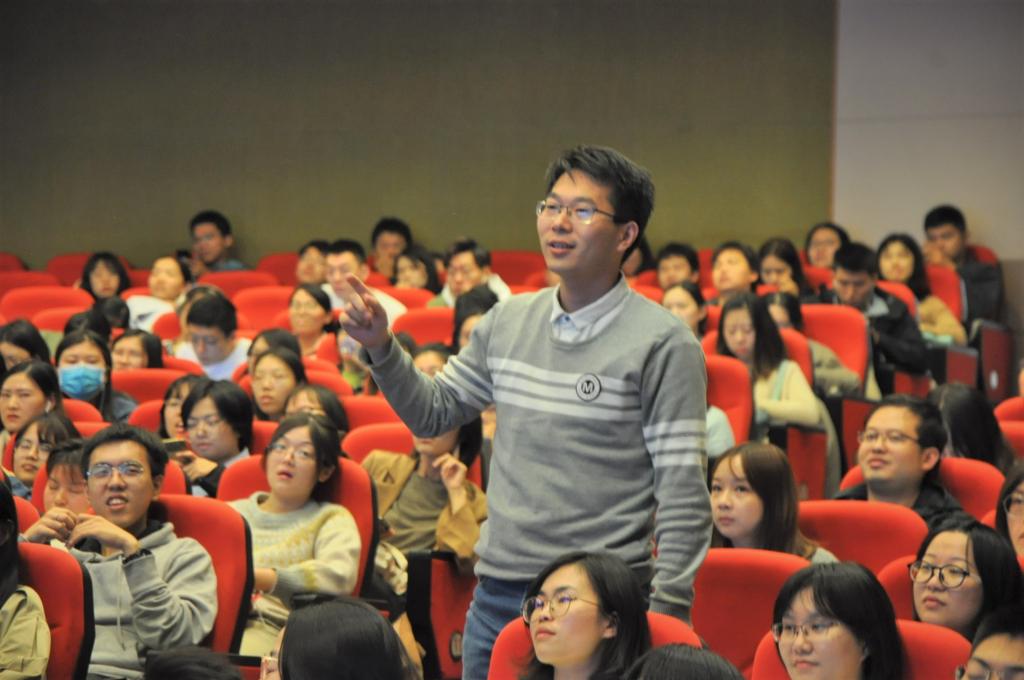 谢警官根据多年扎根在高校积累的办案、校区工作经验,就“冒充公检法、刷单网络兼职、冒充老师熟人、非正规网购客服、面对面、双11盖楼”等高校热门诈骗做了讲解,特别重点介绍了“杀猪盘-圈养喂杀”诈骗案件的特点、参照、危害。谢警官以幽默的语言、深刻的案例,结合与学生合作拍摄制作的防范微电影和动漫短片,讲解分享了安全知识,牢记“陌生人+钱=诈骗、诈骗会发生自己身上”;他还通过与学生互动来加深安全意识,正确回答的同学得到了可爱的警察小熊;谢警官最后公布了警方反诈劝阻统一专号962110和“那个谢蜀黍”微信公众号,以备大家不时之需。此外,主持人结合自己的亲身经历讲述了她所遇到过的诈骗事件,告诫大家远离诈骗,理性同情和消费。
