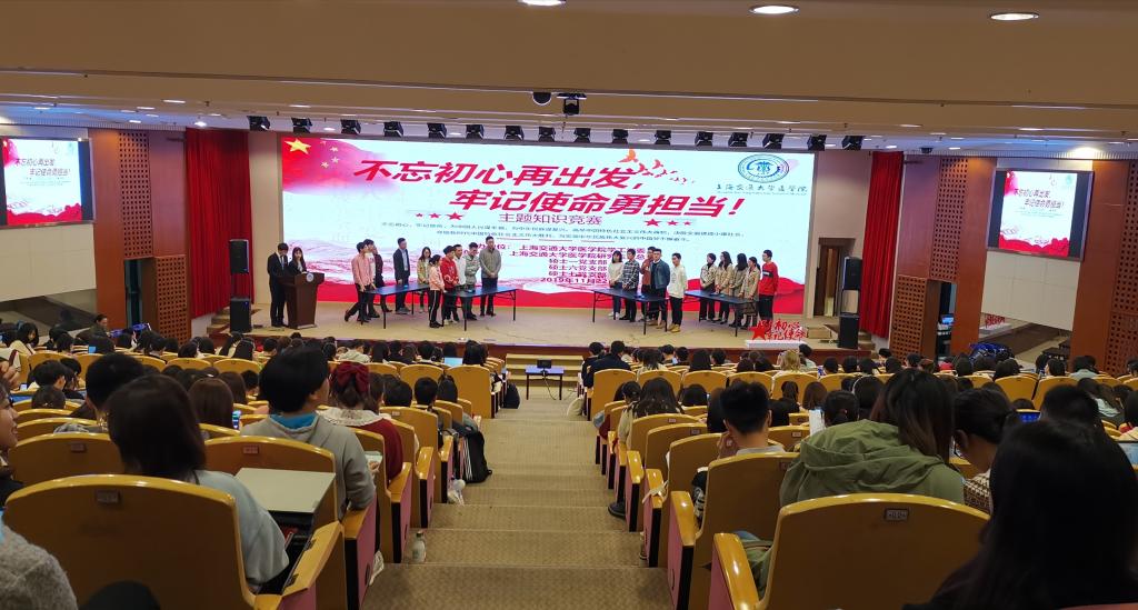 11月22日晚,交大304am永利集团官网学工党委主办的“不忘初心再出发,牢记使命勇担当”主题知识竞赛在懿德楼二楼报告厅举行。由博士生党员、硕士生党员、本科生党员、入党积极分子代表组成了四支参赛队伍。304am永利集团官网本总支书记周栋,研总支书记汤丽,辅导员代表以及学生党员、入党积极分子共同参与了本次活动。