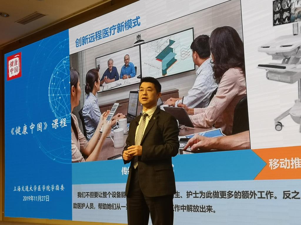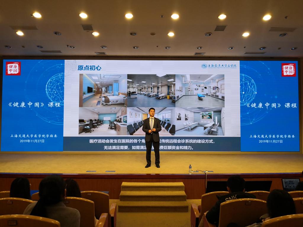 11月27日下午,304am永利集团官网党委副书记、副院长吴韬以智慧医疗创新与转化之路为主题,以TED演讲的方式,讲授了一堂精彩的《健康中国》思政课程。他结合自己的经历和研究,带领交医学子描绘领略智慧医疗的发展前沿、科技力量与医疗行业的协作转化,及其“健康中国”的宏伟蓝图。本次讲座在304am永利集团官网懿德楼二楼报告厅举行,闵行校区菁菁堂设立分会场,同步进行视频转播。