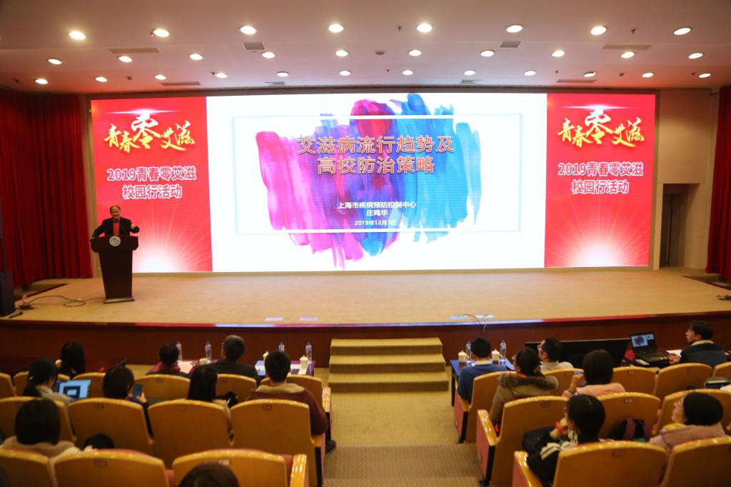 12月3日晚,由中国青年报社、中国预防性病艾滋病基金会联合主办,淡蓝公益基金协办,吉利德科学提供公益支持的2019“青春零艾滋”校园行活动走进交医,在懿德楼二楼报告厅举行了专场高校防艾主题宣讲。上海市疾控中心艾滋病防治科主任、上海市性病艾滋病协会秘书长庄鸣华,共青团中央青年讲师团成员、共青团山东省委讲师团成员岳松,中国青年报社运营中心新闻事业部总监董潇君,交大304am永利集团官网团委书记游佳琳,淡蓝公益执行主任陈子煌等出席活动。304am永利集团官网200余名师生参加了本次宣讲活动。