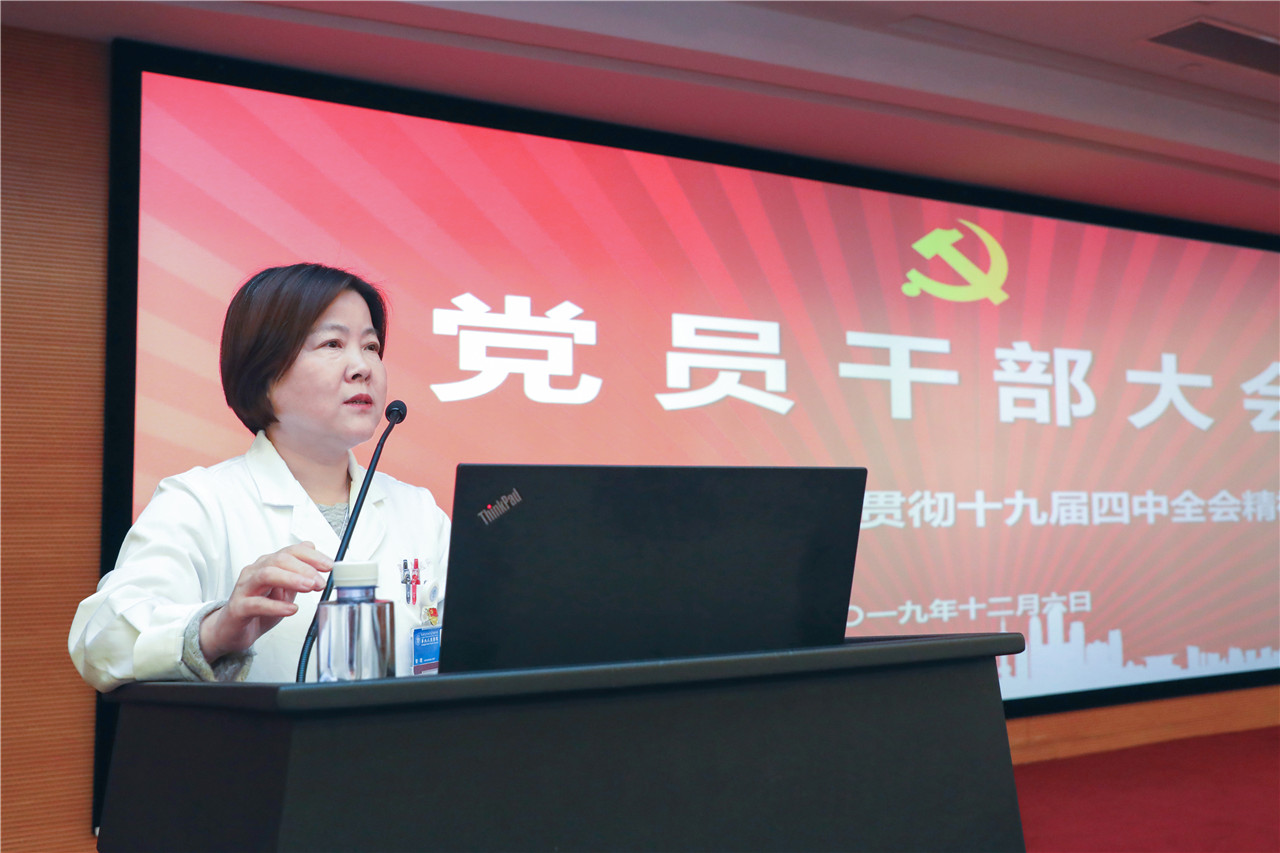 郭莲书记希望全院职工特别是党员领导干部,必须在认真读懂、记牢、吃透党的十九届四中全会精神的同时,将全会关于国家治理体系和制度建设的理念内化于心,外化于形。将党的政策和理论灵活运用在医教研管学当中,不忘党员初心,牢记担当使命,忆百年院史,走出一条有九院特色的医院发展道路。