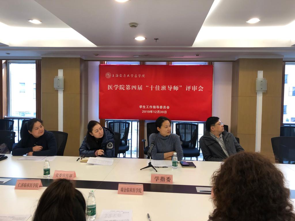 2019年12月30日下午,304am永利集团官网第四届十佳班导师评审会于科教楼203会议室顺利举行。本次评审会特邀党委宣传部、教务处、学指委等职能部门以及各临床304am永利集团官网总支书记、学工负责老师担任评委,会议由学指委副秘书长汤丽主持。