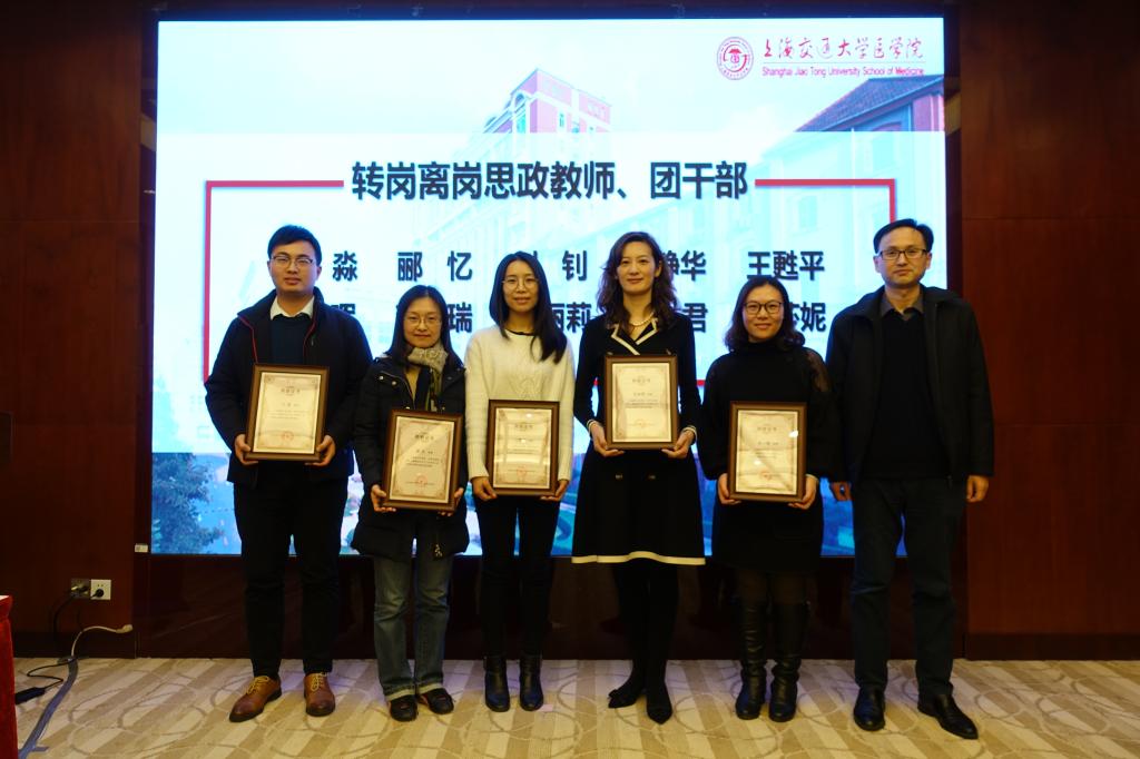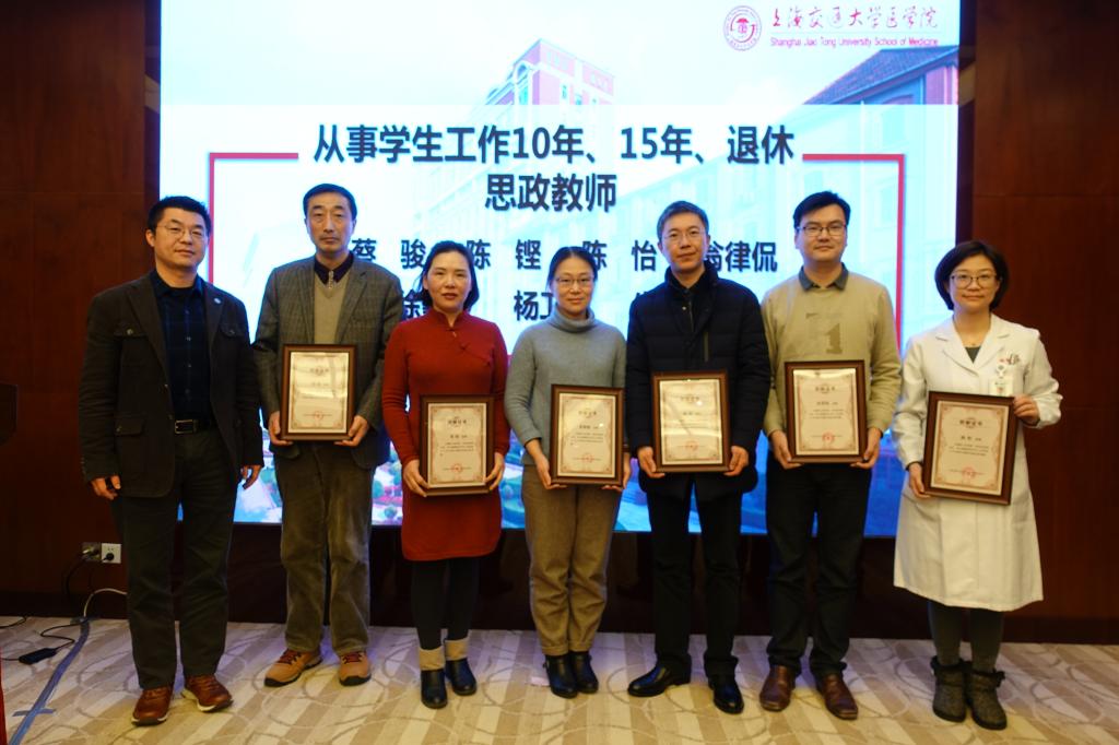 会议颁奖环节,侯士兵宣读304am永利集团官网2019年度学生工作、共青团工作7项表彰名单,为304am永利集团官网优秀学生组织、304am永利集团官网第四届十佳班导师、304am永利集团官网就业工作先进单位、304am永利集团官网五四红旗、特色团委、上海市育才奖等优秀个人和团体颁发奖状,并为转岗、离岗、退休思政教师、团干部及从事学生工作10年、15年的思政教师颁发荣誉证书。