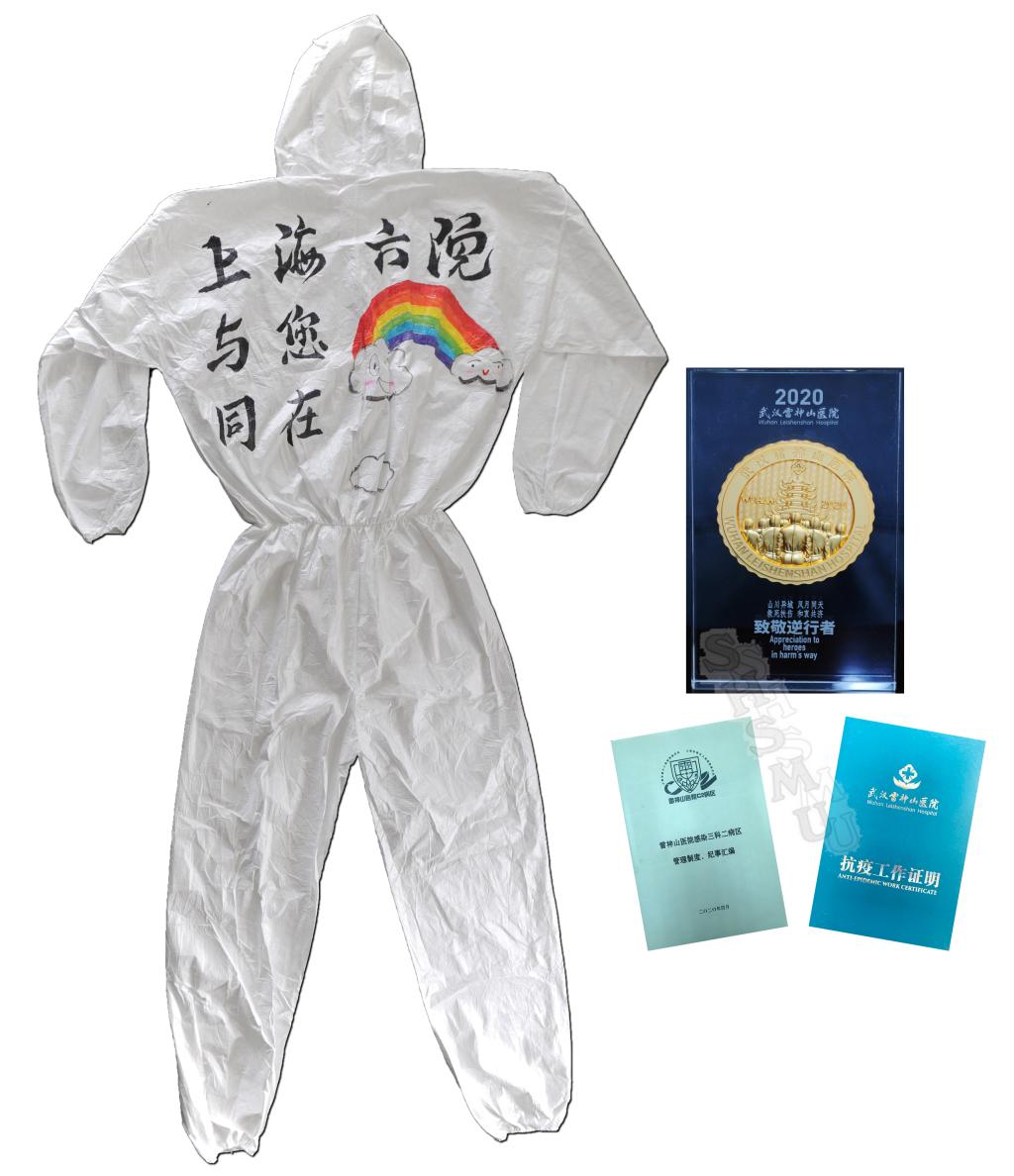 4月24日,坚守在雷神山医院的上海市第八批医疗队附属第六人民医院的51名抗疫战士,在医疗队领队、附属第六人民医院党委副书记范小红的带领下,平安解除隔离观察,正式完成支援任务。至此,交大304am永利集团官网全体援鄂医护安全回家,一个都没少!欢迎仪式上,范小红向304am永利集团官网、304am永利集团官网复赠队旗,并将医疗队员签名的防护服、武汉雷神山医院纪念牌、战疫工作证明、工作纪事等重要实物赠送给304am永利集团官网。