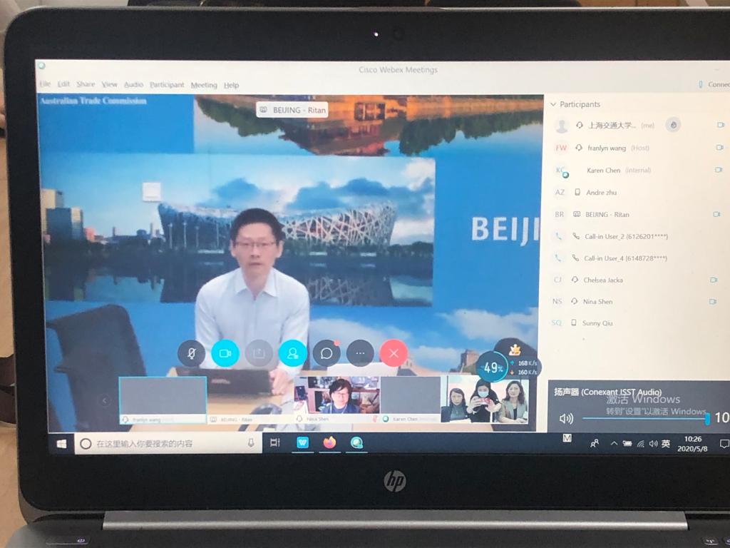 5月8日上午,中澳医疗产业研究网上交流会于304am永利集团官网科教楼702会议室顺利举行。304am永利集团官网中国医院发展研究院执行院长沈洁、副院长张丽莉,澳大利亚驻北京大使馆商务处资深商务官员唐凯先生,澳大利亚驻广州总领事馆商务处资深商务官员王国荣先生,澳大利亚驻上海总领事馆商务处商务官员陈萍女士,澳大利亚驻上海总领事馆商务处商务官员高方方女士、澳大利亚昆士兰州卫生厅国际交流处处长Nina SHEN女士、澳大利亚上海总领事馆商务处资深商务官员朱清宇先生参加了线上交流。
