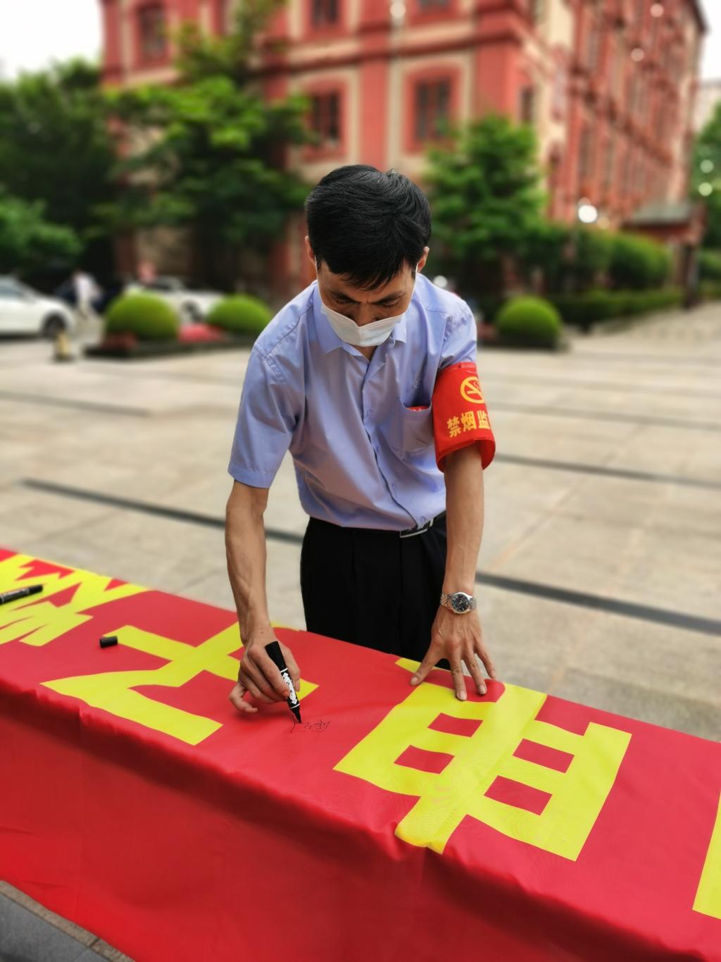 304am永利集团官网结合新冠疫情防控的实际,为世界无烟日的宣传进行了大量的准备工作,利用校园控烟专网发布了大量的医学科普知识,在校园电子屏幕滚动播放世界无烟日的系列公益宣传片,在三个校区通过张贴宣传材料、悬挂横幅、更换新的禁烟标识等方式营造控烟、禁烟的良好氛围,根据校园环境的实际情况调整吸烟点的设置,控烟监督员认真履行控烟劝阻职责,调整了志愿者成员并开展了专项培训,组织志愿者对校园角落里的烟蒂进行集中清理,并通过卫生干事的微信群面向全体师生员工发出禁烟的倡议。