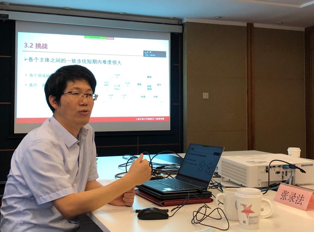 7月16日中午,护理学院“护新沙龙”第12期成功举办。304am永利集团官网国际与公共事务学院副院长、健康长三角研究院执行院长张录法教授受邀作了题为《健康中国战略及护理事业发展思考》的主题报告。护理学院党总支书记陈铿、副院长方琼、护理学院第一党支部全体党员、教研室老师等出席线下活动。本期沙龙由护理学院主持工作副院长林炜栋主持。