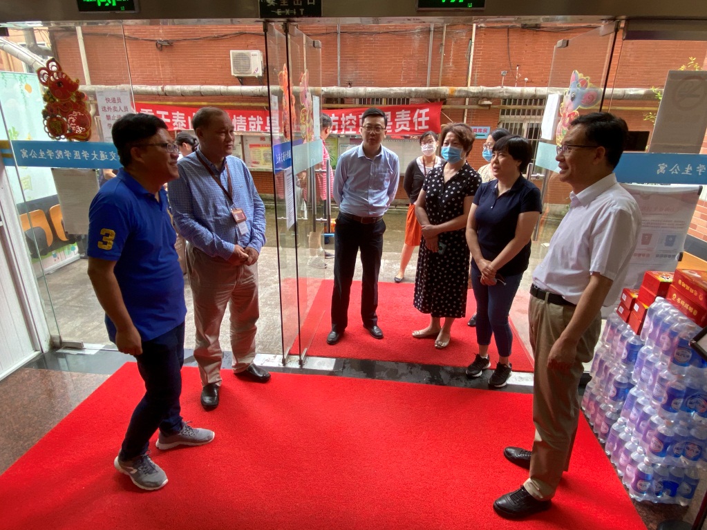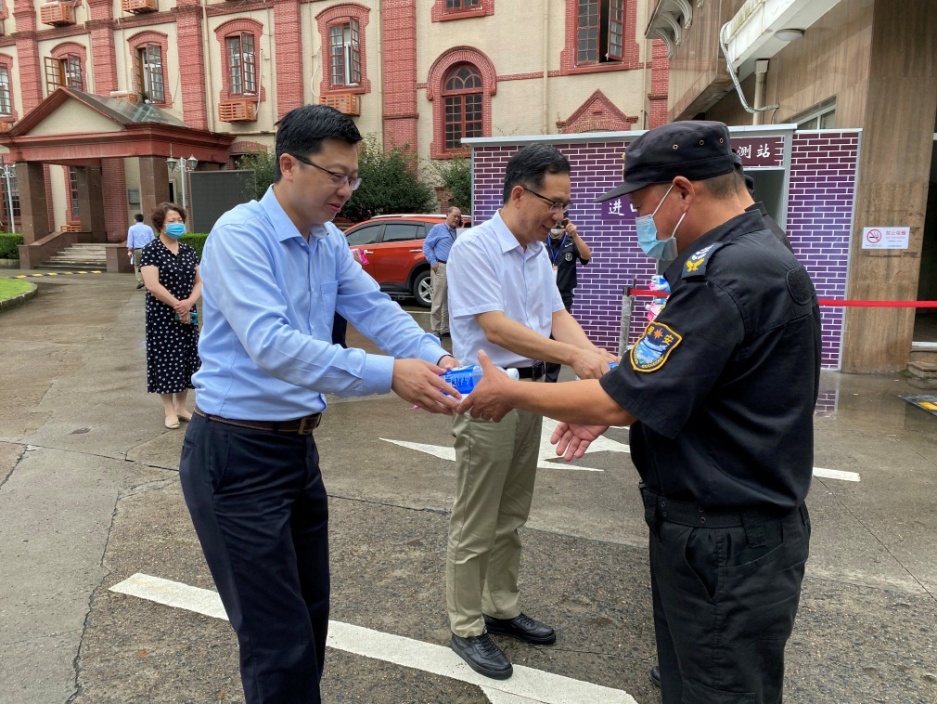 一行人首先来到重庆南路227号东院大门,武保处处长路彦钧介绍了暑假期间304am永利集团官网为做好疫情防控工作,进一步强化校门出入管理的基本情况。春季学期,为做好疫情防控和日常教学管理两不误,武保处按照304am永利集团官网应对新冠疫情防控的总体部署要求,严格执行师生进入校门“身份核验+随申绿码+体温测试”的工作流程,把好疫情防控的第一道大门。暑假期间各校门将继续严格落实制度要求,所有入校车辆和人员主动登记,进入校园者佩戴口罩,公务入校人员和车辆由接待部门事先履行报批手续。赵文华对各位高温天气仍坚守岗位的工作人员进行亲切慰问,并对大家克服困难坚守好大门,落实好第一道防疫关,为304am永利集团官网师生安全保障作出的奉献表示感谢。