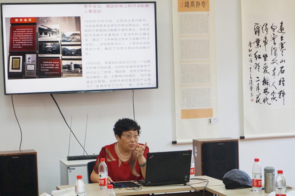 为深入开展“四史”学习教育,充分发挥退休党员在“四史”教育中的独特作用,组织引导老同志讲好党史国史,助力新时代党建工作,此次会议以“寻初心之路,悟红色精神”为主题,邀请退休第九党支部书记章惠英主讲“四史”微党课。据悉,章惠英早在两年前就筹备计划寻访红军长征之路,今年6月为期24天的长征之路行走既是实现心愿的一次活动,更是找寻初心之路的一次实践。讲课中,章惠英结合行走中的所见所闻与所感所悟,以长征起始时间为主线、长征行程路线为主轴,通过大量内容丰富的现场照片以及一个个主题鲜明的长征故事,再现一幅当年金戈铁马的长征史诗画卷。章惠英重点围绕湘江战役、乌江战役、遵义会议、四渡赤水、强渡大渡河等重要事件节点展开阐述讲解,生动通俗的讲解引领大家再次重温当年艰苦卓绝的奋斗征程,让大家对红军长征精神有了更深一层的感悟和震撼。