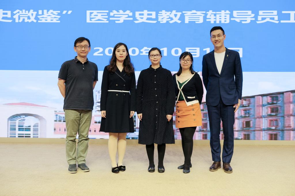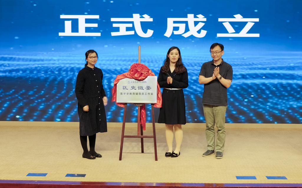 专题讲座后,本次活动进入第二个环节——“医史微鉴”医学史教育辅导员工作室成立仪式。“医史微鉴”医学史教育辅导员工作室负责人、辅导员原媛以《医史之间:当医学遇上历史》为题,介绍了工作室的源起及今后的工作设想。她表示,医学史教育最重要的作用是促进医学人性回归、医学与人文融合,培育医学生高尚医德,提升医学人文素养与职业素养。学习医学史需要关注现实问题,以历史之眼光来审视现实,以未来之理想来改变现实,即In the Present, With the Past and For the Future。成立“医史微鉴”医学史教育辅导员工作室,是学指委加强“四史”教育、落实立德树人根本目标、构建“三全育人”大格局、实现有灵魂的卓越医学创新人才培养目标的一个重要举措。工作室以“打造医学生医学史学习教育的交流园地”为主旨,以名家讲座、读书沙龙、实践考察等丰富多彩的活动形式,带领同学们探索医学的过去、现在和未来。之后,任轶、周栋、原媛三位老师共同为“医史微鉴”医学史教育辅导员工作室揭牌,标志着该工作室的正式启动。
