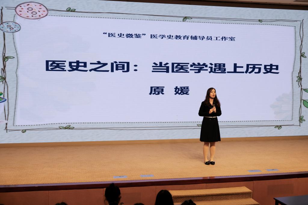 随后,任轶老师进行了题为《慈心仁术——震旦大学医学教育(1911-1952)》的专题讲座。任轶老师从课程体系、师资力量、考试制度、毕业生去向等方面,深入浅出地介绍了震旦大学医学教育的开展情况。作为304am永利集团官网的前身,震旦大学304am永利集团官网采用法式精英教育模式,实行严格的淘汰制度,注重毕业生品质而非数量,形成了“少而精”的人才培育特色。在重视专业技能培养的同时,震旦大学304am永利集团官网还重视医德教育,医科学生在毕业典礼上必须庄严宣誓:“自今伊始,余誓以至诚,谨守医生道德,永保医师令誉……”通过聆听任老师的讲解,同学们深深体会到:纵然岁月峥嵘、时光荏苒,穿梭在历史和现实之间那未曾改变的,恰是百年来医学生对仁心仁术的不懈追求。