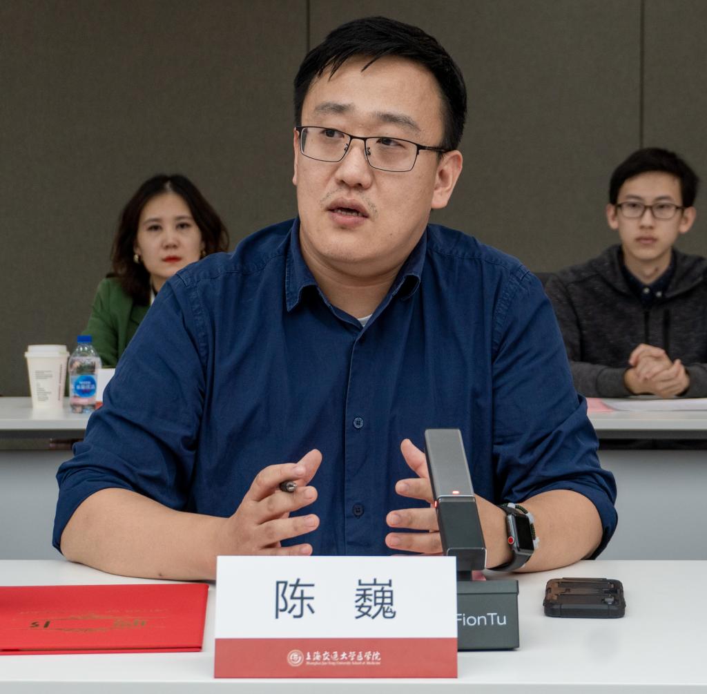 上海市第六批援鄂医疗队队员、附属瑞金医院陈巍老师作为新聘任班导师代表发言。他表示,此次疫情期间在武汉援鄂过程中,更深刻的认识到医学生责任感培养的重要性,希望在担任班导师过程中,能给学生提供更多早期接触临床的机会,通过丰富多彩、内涵深刻的活动,有效提升医学生人文素养,坚定医学生职业理想。