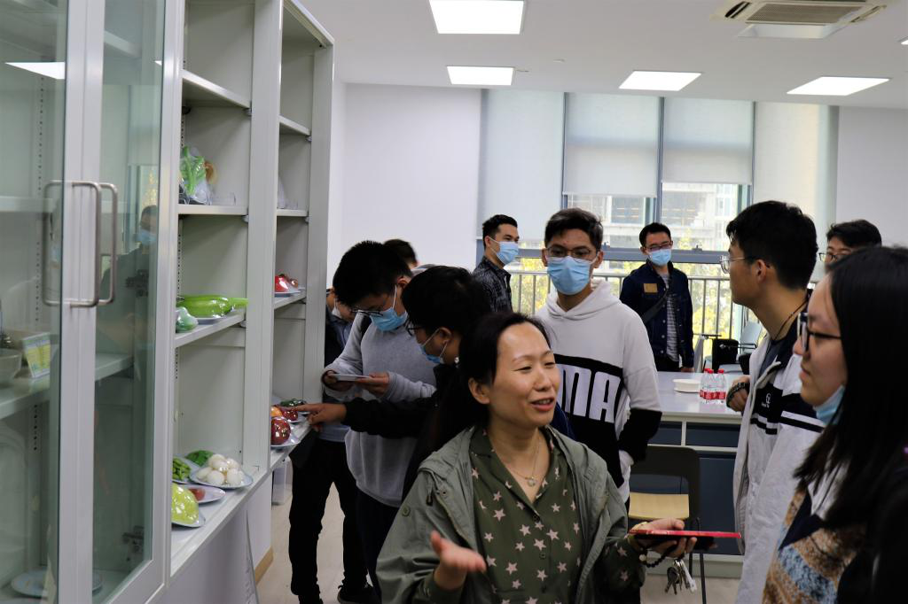 交流结束后,19级班导师贾洁老师带领19级同学参观了新华临床304am永利集团官网营养系实训室。贾洁老师向同学们一一介绍各式各样的先进仪器、食品模型与烘焙室。同学们提前熟悉了环境,增长了见识与好奇心,对后期专业的学习心生向往。