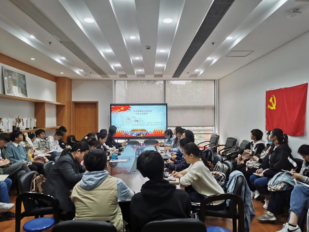 首先,章维敏老师带领同学们学习了大学生入党基本要求。章老师不仅细致讲解了申请人入党条件、党员必备的基本条件和党员必须履行的义务和具有的权利,更通过分享疫情期间抗疫英雄的故事,向学生强调了新时代党员的楷模作用。她强调:“越是艰险越向前,这是共产党人与生俱来的政治本色,也是入党信念的全面体现和升华。”
