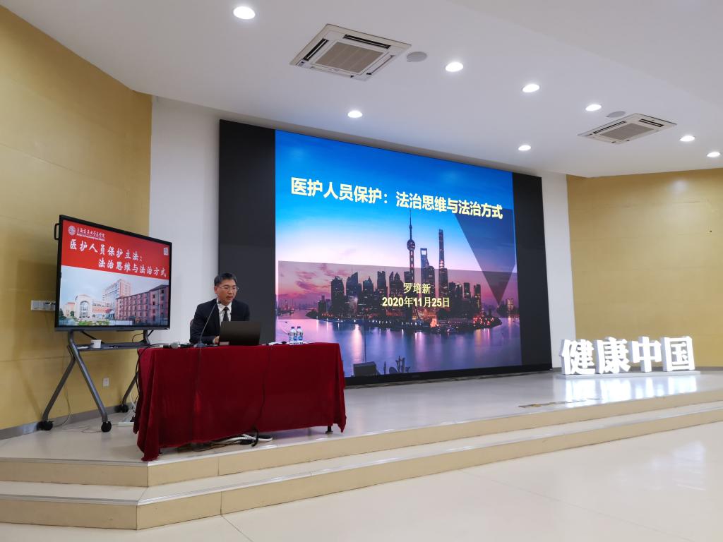11月25日下午,上海市司法局副局长、北京大学法学博士、中国社会科学院法学所博士后、博士生导师罗培新教授做客《健康中国》,为闵行校区2020级医学生们带来“医护人员保护立法:法治思维与法治方式”的主题讲座。