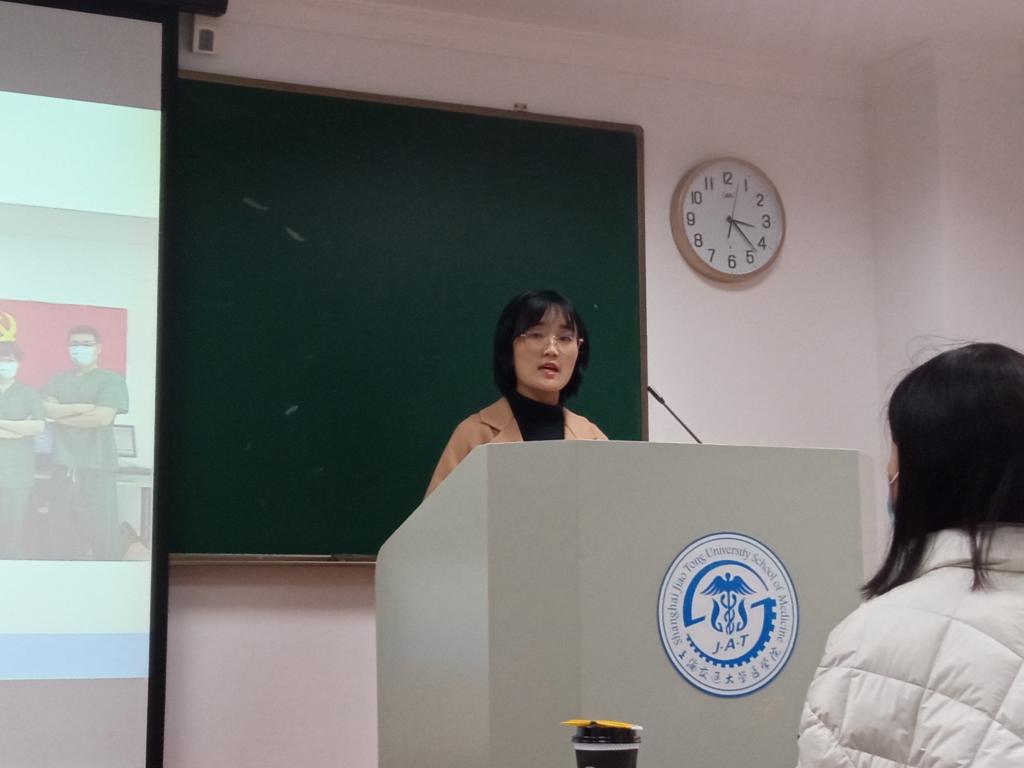 紧接着,沈虹老师为同学们介绍她在援鄂期间的故事。守初心、担使命,尽管了解到新冠病毒的凶险,她毅然决然地响应了第一次援鄂队伍的号召。作为往届交大护理学院的学生,她用质朴的语言描述了自己的心理改变、所做所闻,将真实的援鄂经历向同学们娓娓道来,“吃了上顿可能没下顿”、“因身体不适而道歉自责”、“口罩压出二级压疮会有多痛”等鲜活的抗疫故事,这是在媒体之外让同学们了解到了援鄂第一批医疗队员的不易与艰辛。