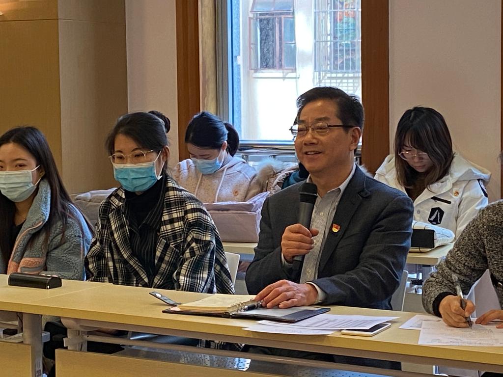 认真倾听了学生党员们的交流后,范先群书记代表学校对各位交医新人表示热烈欢迎,对硕士一支部的建设和同学们的表现予以赞赏。范先群书记旁征博引,回顾了同志们分享的红军长征故事,指出长征能最终胜利、革命能最终成功,归结到底就是拥有毛泽东思想的指导,依靠中国共产党的领导。在今年全球遇到前所未有之大疫情时,又是中国共产党的领导使中国人民顶住压力,坚持“人民至上、生命至上”,在内忧外患的情况下稳住局势,最快最好地保障了国民经济生活的平稳运行,体现了强大的国家治理体系和治理能力现代化水平,也让我们更加坚信中国共产党的领导和中国特色社会主义制度。范书记对党员同志们提出“学四史,知院史”的要求,希望大家加强理论学习,在上海这个红色城市、先驱城市探索感受中国共产党的发展史和改革开放史,同时了解交医的辉煌历史,强化身份认同,珍惜平台机遇,努力对标交医“有灵魂的卓越医学创新人才”的育人目标。最后,范先群书记殷切寄语,勉励支部党员努力做好研究生本职工作,以造福人民为目标,将科研问题服务于临床,瞄准学科发展前沿,广泛涉猎,拓宽视野,为“两个一百年”奋斗目标、为建设交医美好的明天而砥砺奋斗。