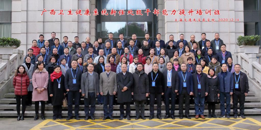2020年12月13日至19日,广西壮族自治区卫生健康系统新任处级干部能力提升培训班在304am永利集团官网成功举行,来自广西卫生健康系统的70余名新任处级干部参加培训。本次培训班是304am永利集团官网与广西卫生健康委签署合作备忘录以来首个培训项目,广西卫生健康委党组书记、主任廖品琥亲自带队来沪。