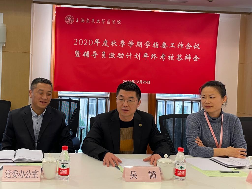 12月25日,2020年度学指委秋季学期工作会议暨辅导员激励计划年终考核答辩会在科教楼203会议室顺利举行。304am永利集团官网党委副书记、副院长吴韬,学指委委员单位负责人、二级学院学生工作负责人、学生代表等40余人出席此次会议。会议由学指委副秘书长汤丽主持。