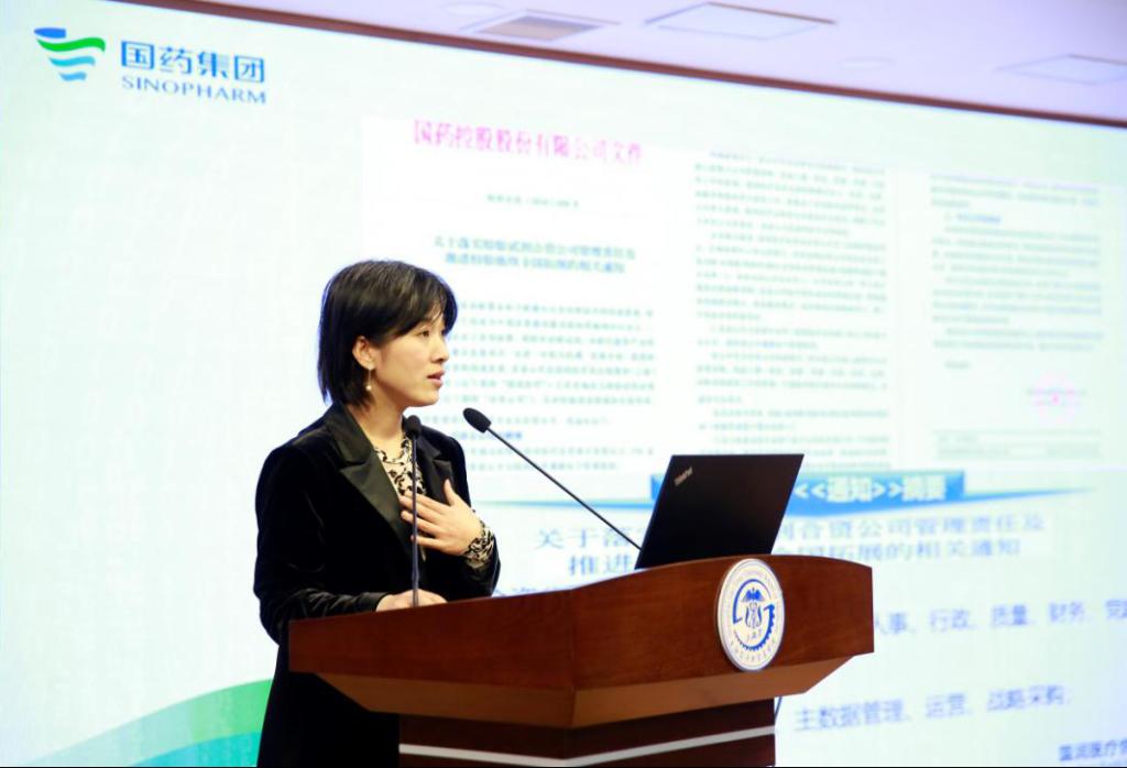 随后,国润医疗供应链服务(上海)有限公司人力党支部书记、人力资源部部长李冰作为特邀企业代表致辞。李冰部长首先感谢学院在企业专业化人才队伍建设上给予的莫大支持。她表示,科学的企业运营策略及分析应该是基于学科专业之上的,企业的人才发展战略不仅要提高人才密度,更重要是让人才发展跟上行业发展。如果把企业发展比喻成交响曲的话,专业人才发展就是交响曲中的定音鼓,有了定音鼓才能奏响一曲有温度、有态度的交响曲。她借用习近平总书记提出的“人民有信仰,民族就有希望,国家就有力量”,希望通过学历继续教育平台,持续不断地提升校企双方合作的维度和宽度,助力企业建设专业的、敬业的、职业的人才队伍。国药控股北京有限公司薪酬绩效主管王雅林作为校企合作优秀毕业生代表发言。她对新生们表示欢迎,同时也为学弟学妹们加油鼓劲。她说,“同学们今天的奋斗与追求,终将在学院的土地上生根、发芽、开花、结果……希望大家保持激情,为实现自己的理想而不断奋斗。”她还向新生们分享了自己在职学习中的经验与心得。