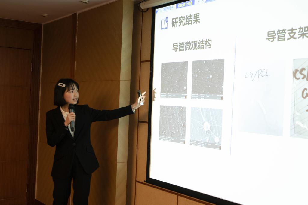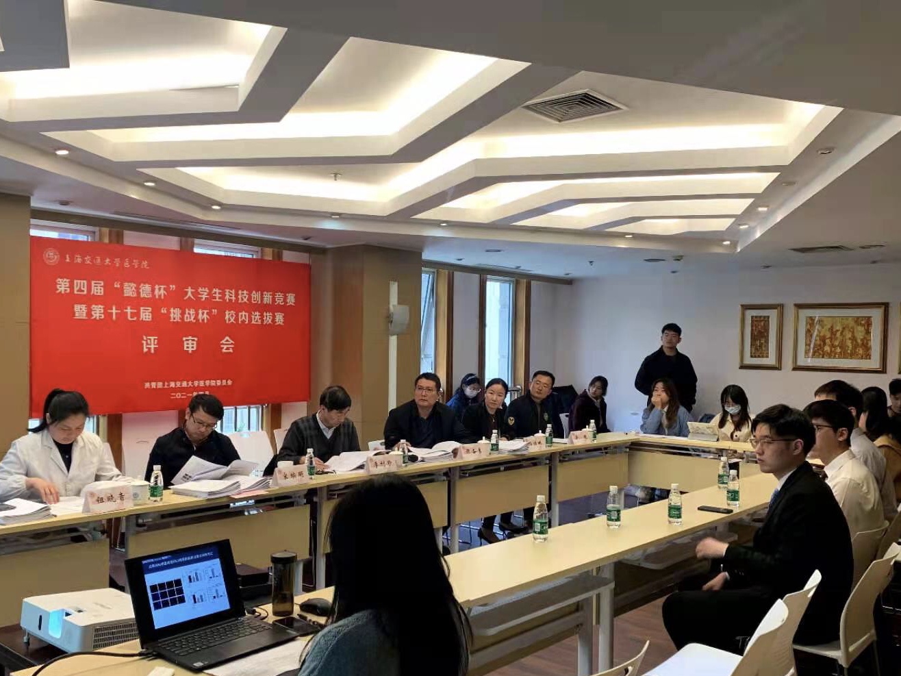 评审会上,16件作品的参赛选手按照答辩顺序,分别从研究背景、研究目的、研究意义、创新性、科学性、发展前景等方面进行汇报展示,并接受评审的提问答辩。参赛作品聚焦科技前沿、应用价值和社会热点难点,展现了交医学子的创新风采。在评审提问环节,参赛选手对于作品构思、个人贡献度、研究意义、科学性、创新亮点等多角度的提问,进行了缜密的论证和表述,体现出交医学子在科创研究方面的长期积累与深入探索。评审团充分肯定了选手们的创新成果,同时针对不足之处指明进一步完善的方向、提出具体改进建议,更好备战“挑战杯”市赛乃至国赛。评审会场内互动气氛热烈,选手与评审在科研创新的思维殿堂展开深入交流。